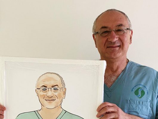 ד"ר לאוניד ברסקי חגג 60 בביה"ח וזכה לדיוקן שציירה חולת קורונה שהחלימה