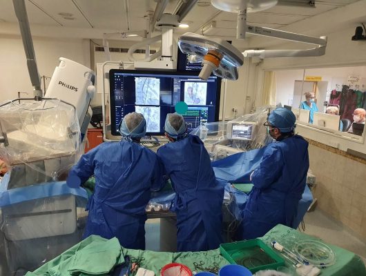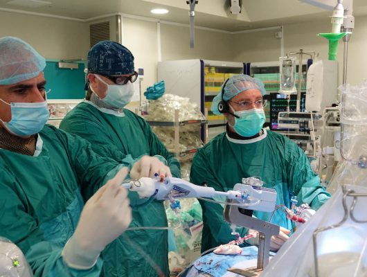 מטופל עם לב חלש צונתר בבי"ח קפלן בסיוע מכשיר אקמו שהחליף את הלב בעת ההליך הרפואי
