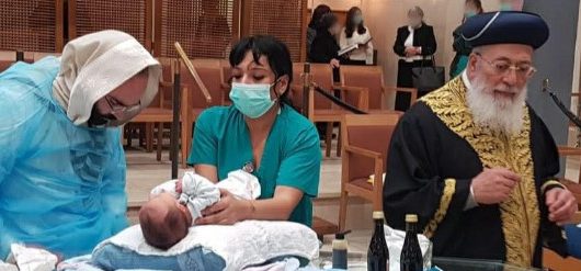 יולדת חולת קורונה צפתה בברית בזום: צוות הדסה והרב עמאר ערכו ברית מבודדת ומרגשת לתינוק