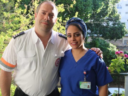 הנשים, רעות ויוליה, אחיות במיון ביה"ח ברחובות. הבעלים, מאיר ומקסים, פרמדיקים במד"א